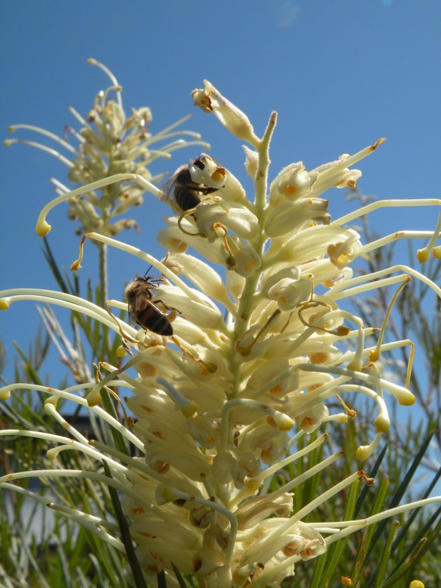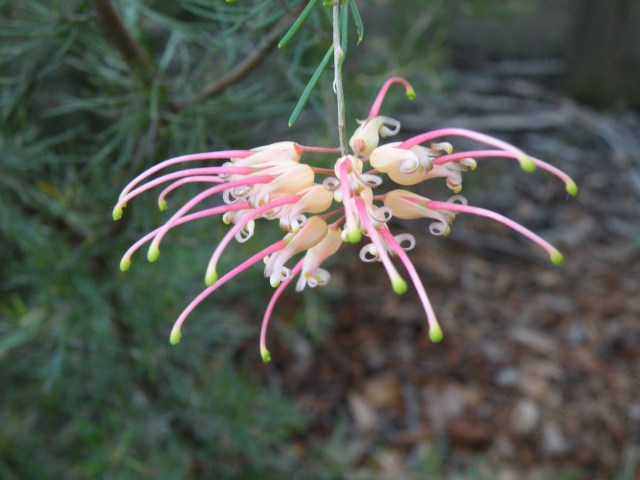 During February very few plants in our garden were flowering. However a number of Grevilleas were the exception. This Grevillea semperflorens easily reinforces the nickname ‘spider’ that many Grevilleas are renowned for. It is in a very heavy clay soil, along with two other Grevilleas and a couple of Callistemons on the south-west side of our property.