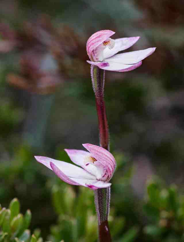 - Inevitable orchids – Caladenia alpestris, Chiloglottis valida (Bird-orchid), Prasophyllum alpestre and tadgellianum(Leek-orchids), Pterostylis cycnocephala (Alpine Swan Greenhood)