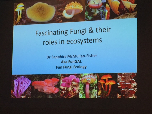 Our guest speaker, Sapphire McMullan-Fisher, a mycologist from the Royal Botanical Gardens in Melbourne and the coordinator of Fungimap, gave an entertaining and informative talk about the role of fungi in various ecosystems. Her talk was enthusiastically presented and supported by a wonderful set of PowerPoint slides. We even learnt some very new difficult words associated with fungi! More information can be found at – https://fungimap.org.au