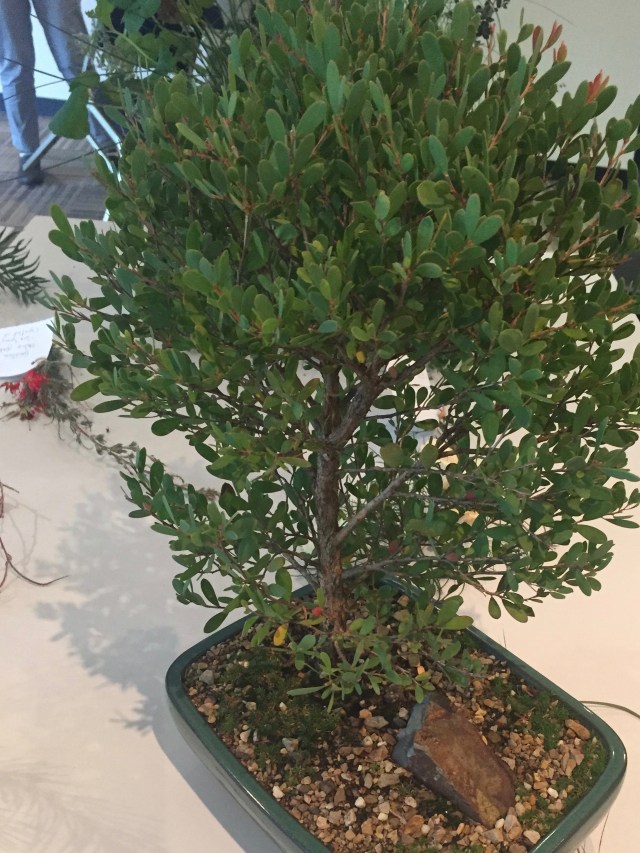 and a lovely bonsai specimen that member, Sue Gilbert has been creating using a coastal tea tree, Leptospermum laevigatum. Well done Sue.