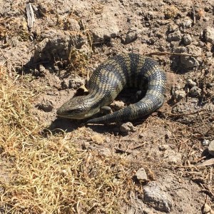 Most recently I was surprised by this Blue Tongue Lizard when I moved a piece of black plastic lying on the ground. Actually it was equally surprised and quickly moved off into the safety of our ground covers.