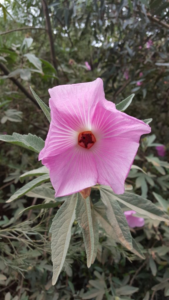 Back in July when we were all in lockdown here on the Peninsula many of us spent a lot of time in our gardens. Member, Robyn Tyson had the pre-spring pleasure of her native Hibiscus being in bloom. The pink Hibiscus splendens has interesting grey hairy leaves and vibrant large pink flowers which unfortunately only last a day. It is a quick growing tallish shrub from NSW and Qld. Robyn’s handles being in a fairly shady spot.