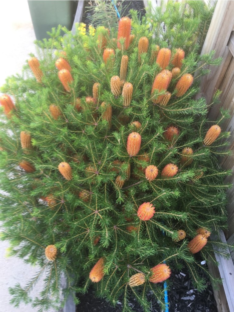 We brought about 40 banksia from Royal Botanical Gardens Cranbourne Growing Friends Plant sale too a week or so ago, but without any rain the grounds are too dry at present to contemplate planting any out yet. So they reside in my back yard till they can be planted.