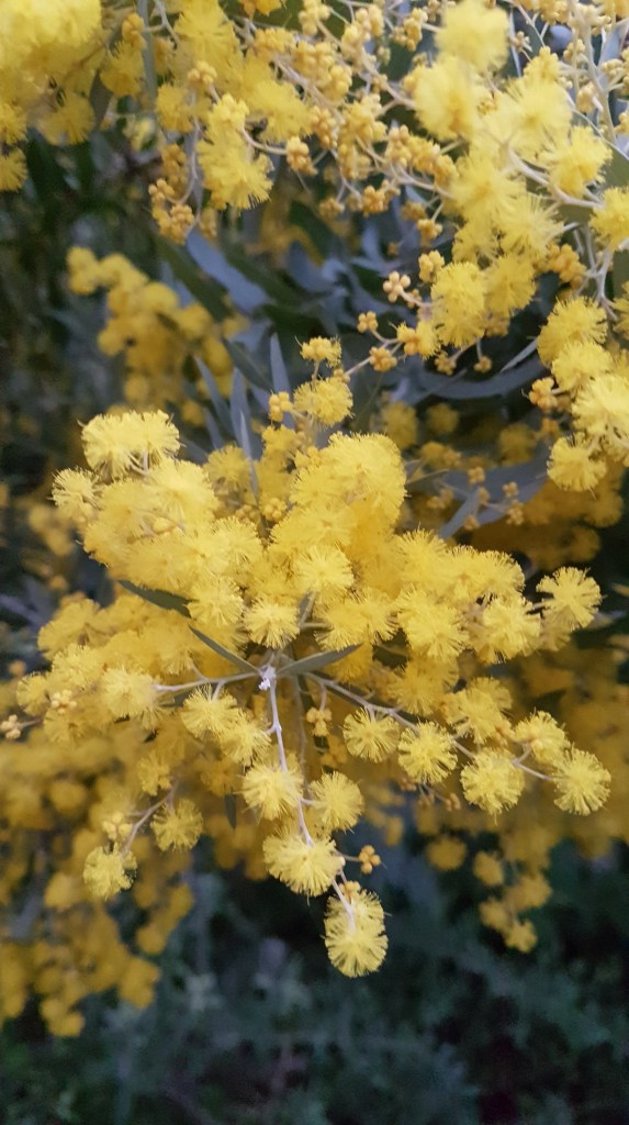 You hope winter is ending when the Acacias are out in full bloom, don’t you. Clearly the weather is a mixed bag still but Robyn Tyson was pleased with the golden array in her garden. Here’s one of her Acacias.