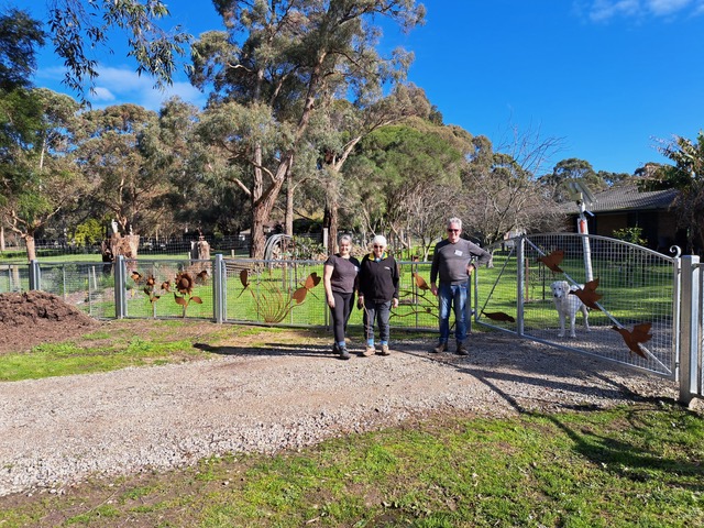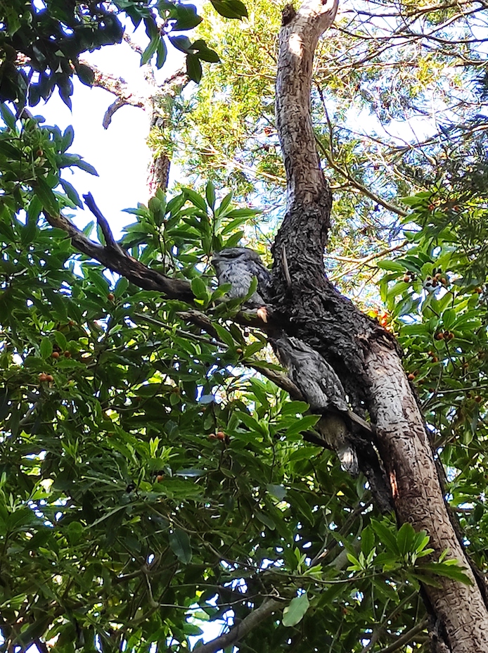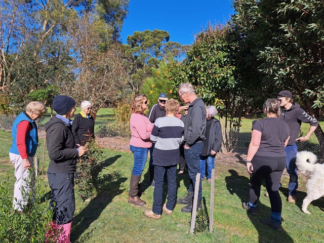 We scored a beautiful July day to visit Ruth Marriott’s bushland garden in Mt Eliza. Ruth has lived on the block since the early 1980s and has maintained it as a bush garden, with swathes of native grasses (couldn’t spot any invasive grasses at all!), rare grevilleas, beautiful correas, acacias, eucalypts, and some wildlife (spot the tawny frogmouths). We were a little early for the varieties of orchids that Ruth has coming up in her driveway, but her photos of them looked spectacular. It was interesting to see what that whole area of Mt Eliza may have looked like prior to housing developments.