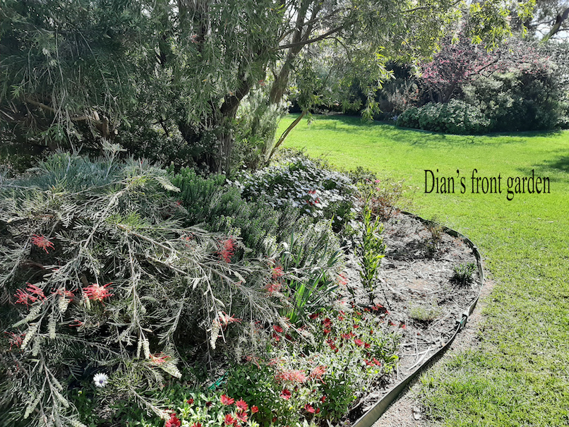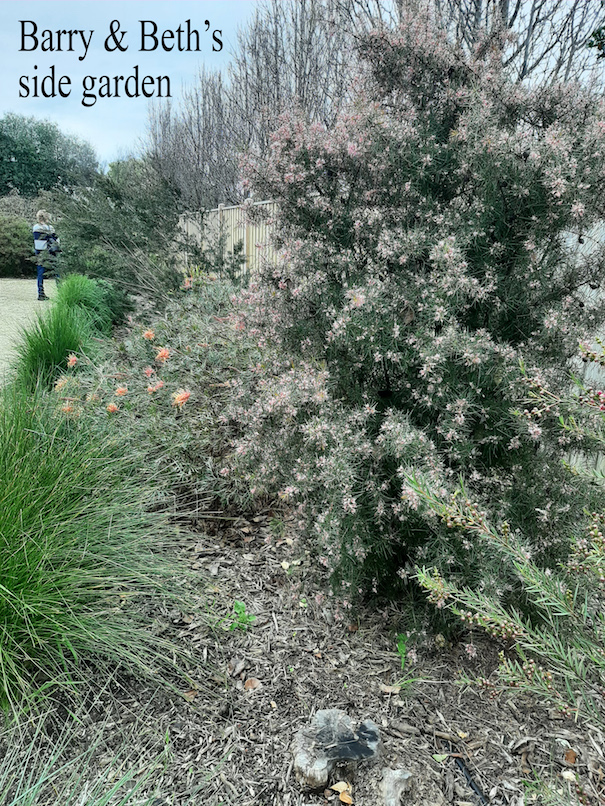 On 11th September we had a double garden visit to Dian Crosling’s and Barry & Beth Wilson’s. Seven members plus our hosts met at Barry’s under a bright blue, sunny sky and walked to Dians where we saw a variety of plants. Dian likes her grevilleas and has quite a few varieties amongst other native plants.