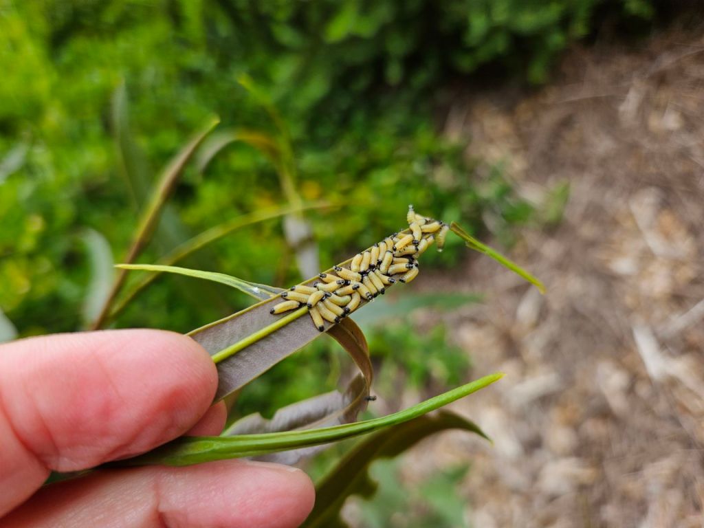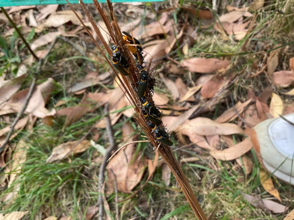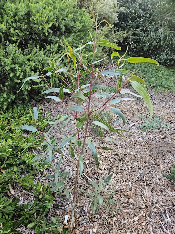 Normally I would select a plant that was flowering for inclusion in this section of the newsletter but back in January our unusual Eucalyptus erythrocorys wasn’t flowering. In fact it is still quite small being only about a metre in height. So we weren’t happy to find quite a lot of leaves under attack. Needless to say the offenders were given the squish treatment.