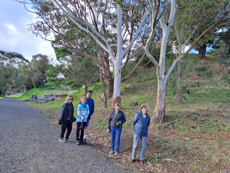 This excursion was moved away from its previously advertised date of September 1st due to a clash with Fathers’ Day. Leader Robyn Tyson reported to me – A group of fifteen plus a grandson walked around the sculpture park at McClelland Gallery, discovering not only sculptures of giant metal beetles and monkeys but a trail of different types of Eucalypts planted in groups, showing different barks.