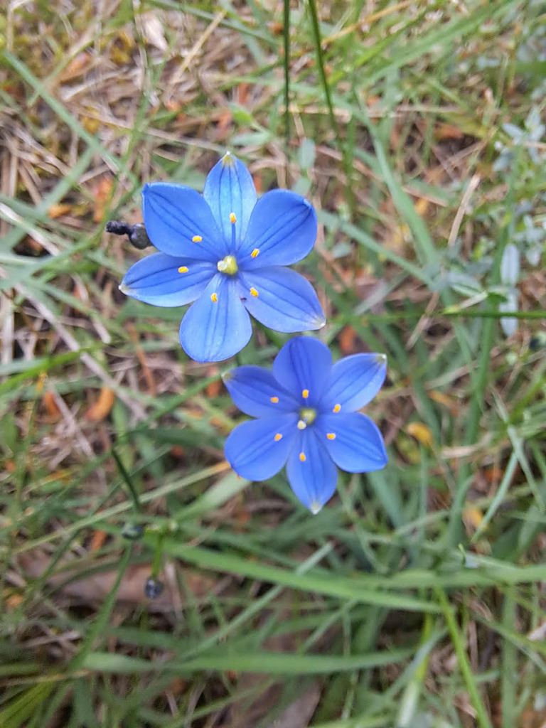 We did a bit of exploring off the main trail and found Bossiaea, Wedding bush (Ricinocarpos pinifolius) and large areas of Blue stars (Chamaescilla corymbosa), and a couple of interesting Acacias. The afternoon culminated in a stroll around the lake and coffee in the Cafe.