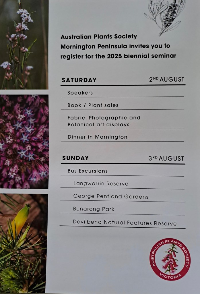 Dr Rebecca Millar was our speaker for the June 18th meeting. She gave a very informative talk about seed collection and her work with the RBGV where she leads a group doing research about native plant seeds, especially some of our state’s more threatened species. She also talked about projects she leads involving students and their work in revegetation.