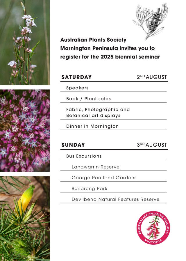 Don’t forget if you have a ‘beauty’ in your garden you’d like everyone to see send me an email with photo attached (Attention – Newsletter, morningtonpeninsula@aps.org.vic) and a brief blurb so that it can be included in our plant of the Month section.