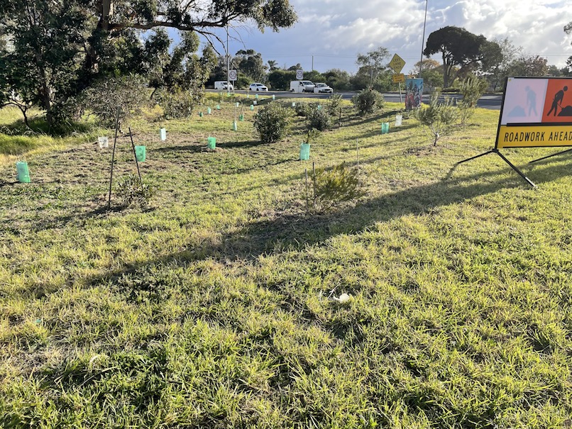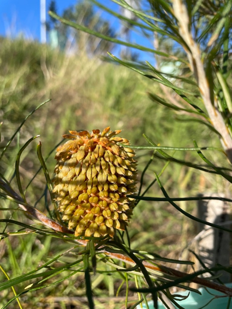 Ross Shepherd reported to me on some recent grass slashings by paid tradespeople and a kind volunteer. (Unlike with the previous contractor there were no losses this time!) Ross has also been able to procure replacement banksias at our Plant Sale and other group Plant Sales as well as Wildtech Nursery over in Heyfield. Some autumn planting has now happened even though Ross had been waiting for rain (like the rest of us ) before planting. Most previous plantings are doing well. Currently over 1900 planted with about 50 losses. Ross has also been spreading the word as a guest speaker, most recently at Stawell APS where he was lucky enough to be hosted by Neil and Wendy Marriott and saw their extensive collection. They allowed him to collect several rare cones with the idea of getting their seeds for ourselves and they also donated a rare form of Banksia integrifolia that grows on Kurnel beach NSW on the edge of Botany Bay where Banks discovered his first banksia. Here’s a few photos.