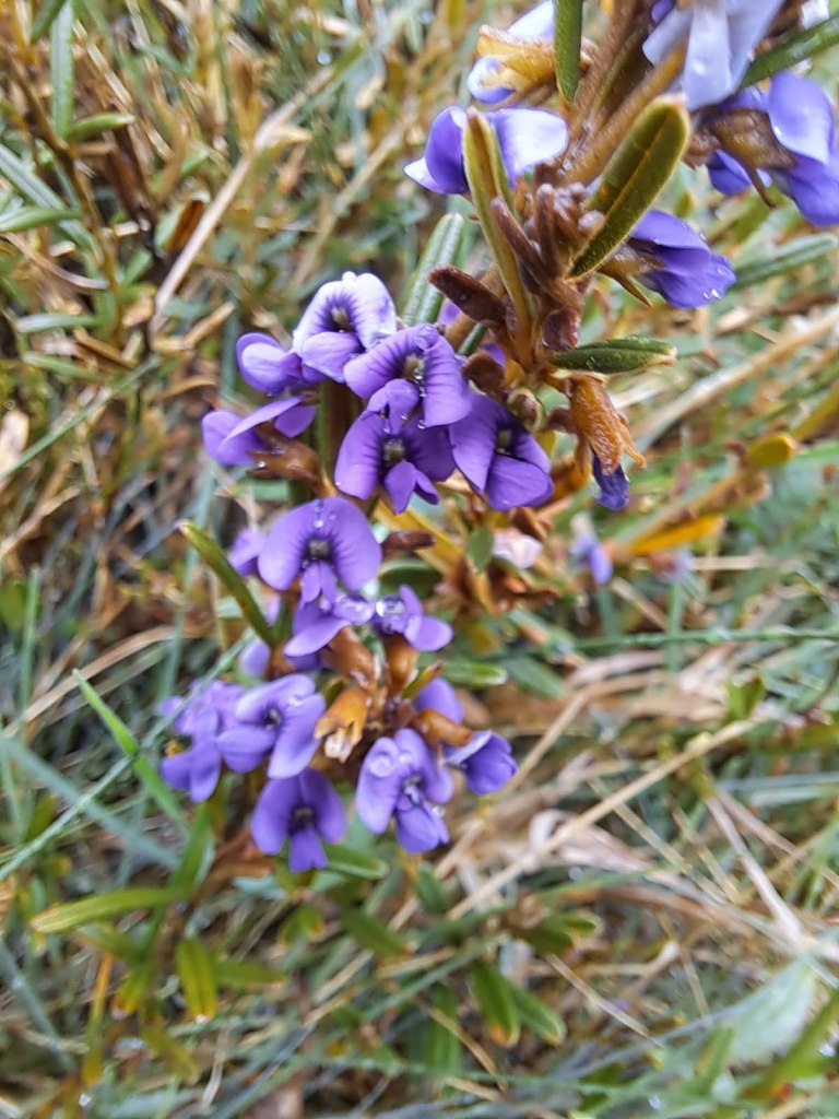 After the COMM in Wangaratta 2024 Robyn went to Mt Buffalo. Unfortunately it poured rain for the 3 days that she camped at Lake Catani so she just walked around that area whenever she could. That said she managed to spot and photograph lots of plants in flower to share. Here’s a few photos Robyn included and sent to me. She saw lots of peas, both egg and bacons, Hoveas,