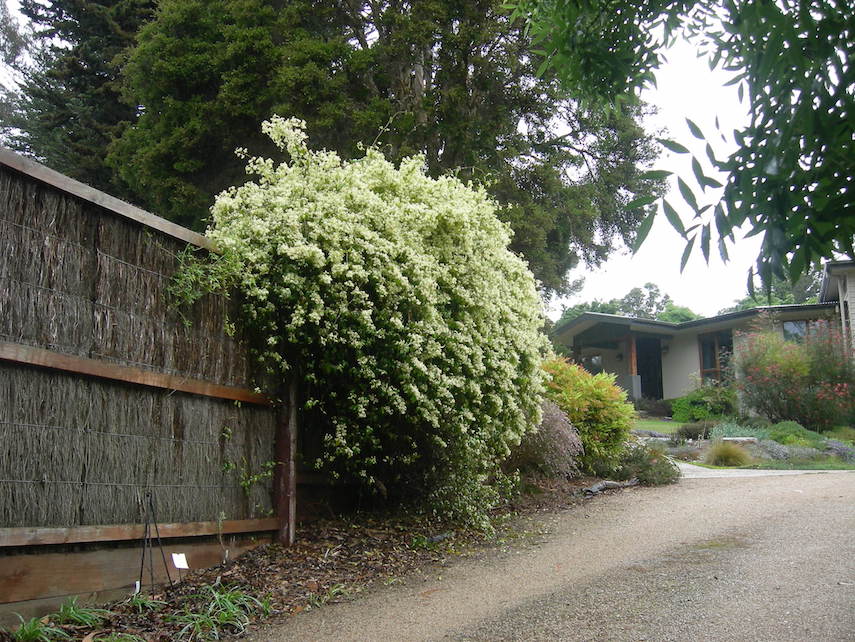 Following on from his presentation Charles sent me this photo of his Aphanopetalum resinosum (gum vine). It has been growing on his side fence for approximately 5 years. It is bigger each year and was extremely full of flower in October.