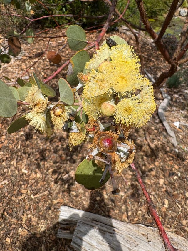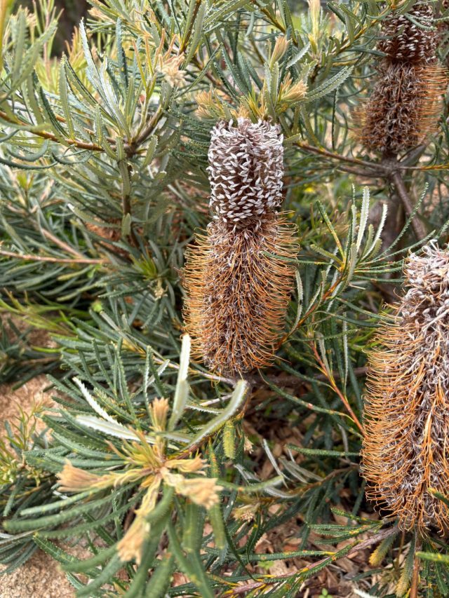 Our Banksia ashbyi has been in the ground for about eight years. It is quite stunted but each year manages to give us one or two brilliant orange cones in time for Christmas.